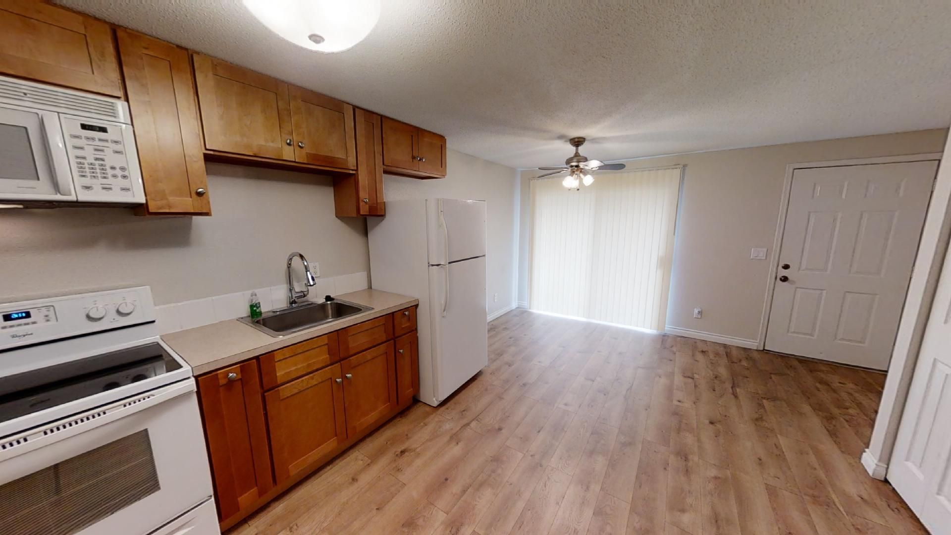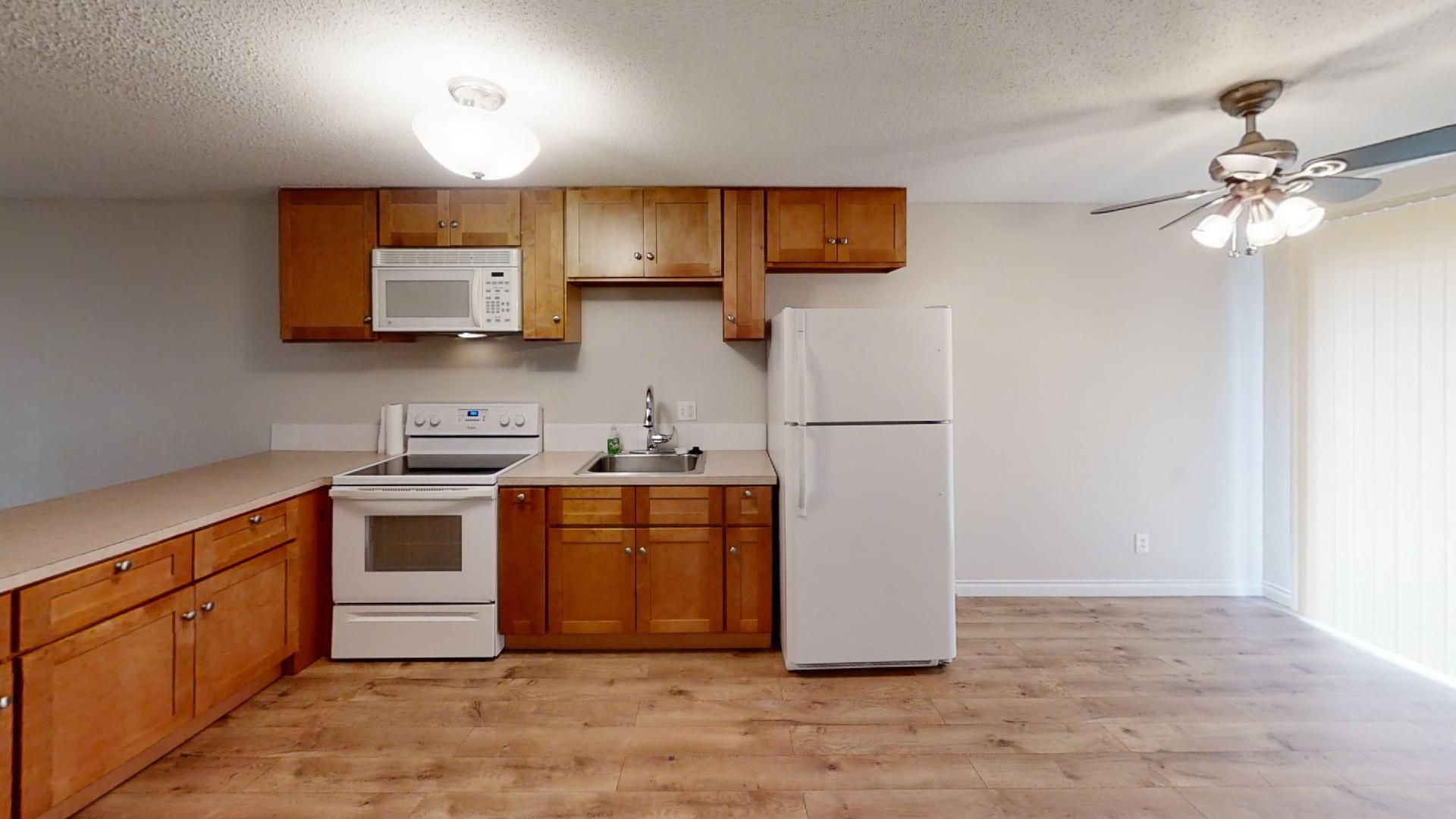 Inside, you’ll find beautiful LVP flooring throughout the living areas and hallway, paired with soft, cozy carpeted bedrooms for added comfort. The bright living room flows into a spacious kitchen with plenty of cabinet space and full-size appliances, and there's a bright, airy dining area right when you walk in!