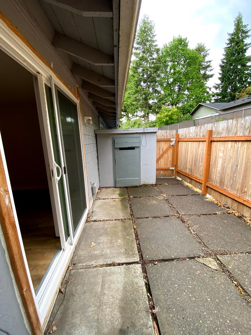 • A private back patio with storage.