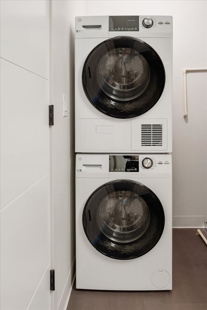 • In-unit stacked washer/dryer and dedicated hot water heater